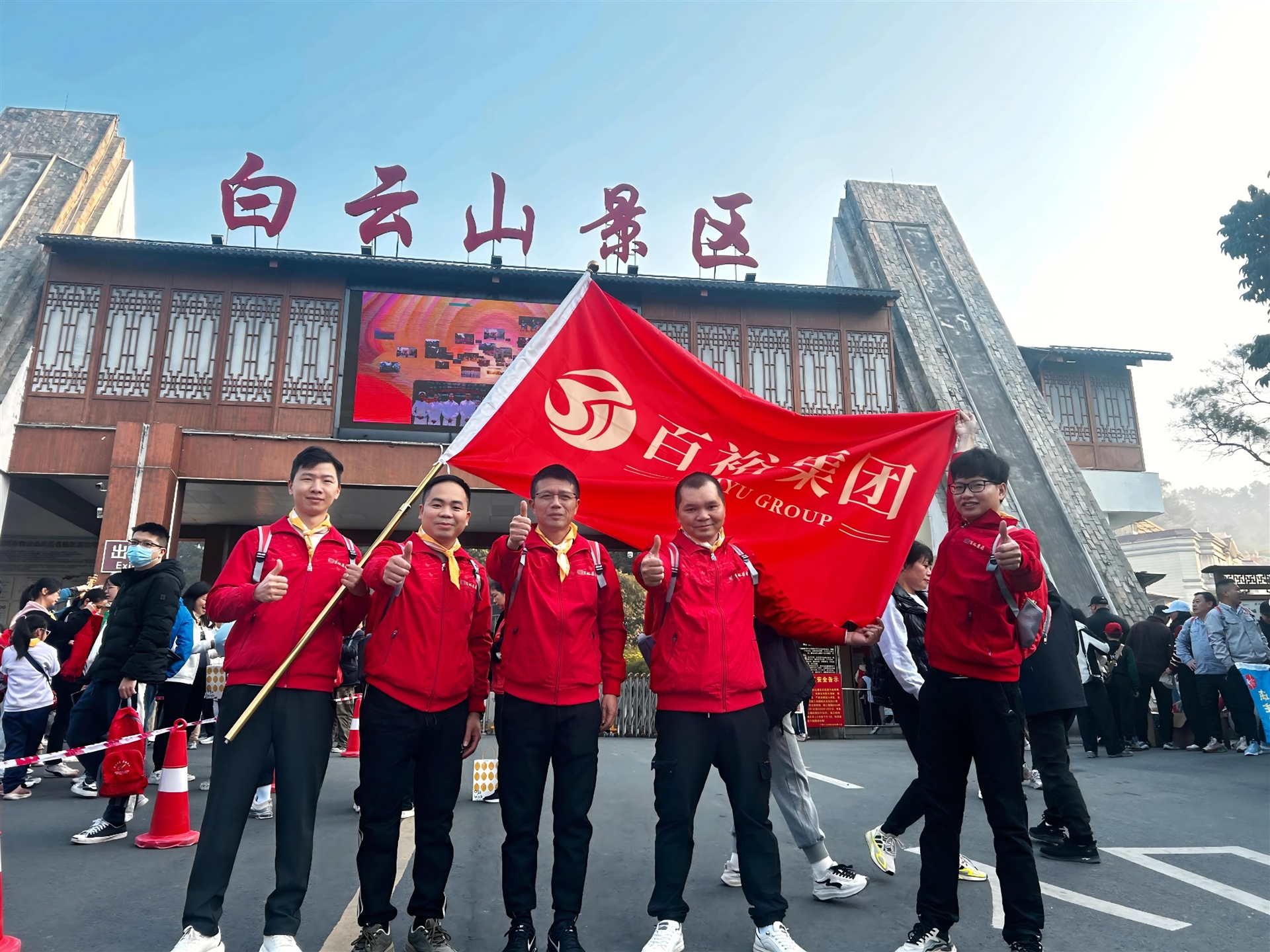 清晨,百裕代表們聚集在白云山正門,他們身著整齊劃一的隊服?,F(xiàn)場旗幟飄揚,歡聲笑語交織,大家臉上洋溢著對新年的憧憬與拼搏的豪情,準備以腳步丈量高峰,用汗水澆灌夢想。