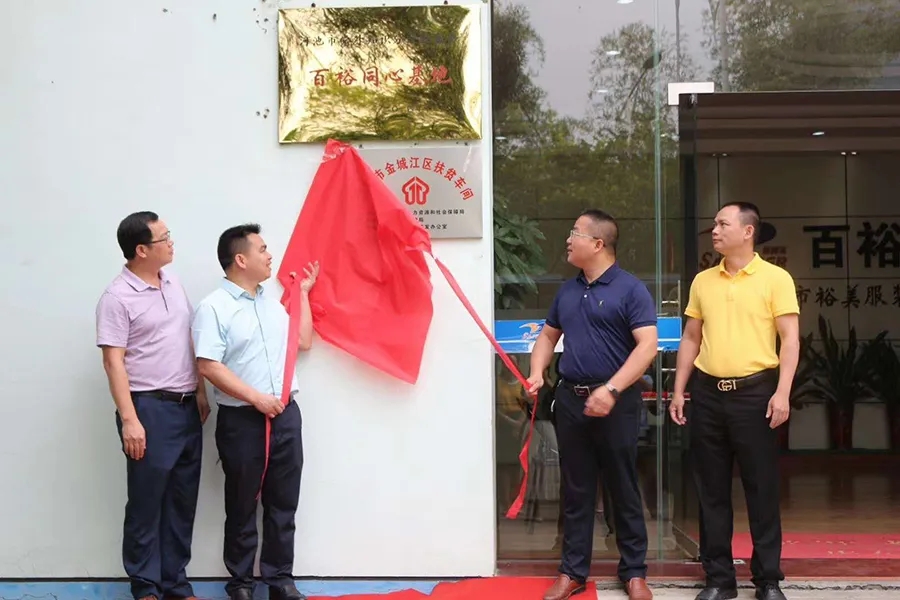 百裕集團(tuán)河池分公司是河池市委市政府招商引資的服裝生產(chǎn)企業(yè),也是金城江區(qū)重點(diǎn)企業(yè),主營服裝生產(chǎn)加工業(yè)務(wù),公司現(xiàn)有員工149人,其中,來自貧困家庭員工8人。2020年疫情期間,已落實(shí)發(fā)放公司國家階段性減免企業(yè)職工基本養(yǎng)老、工傷、失業(yè)三項(xiàng)社會(huì)保險(xiǎn)單位部分補(bǔ)貼13.83萬元和企業(yè)一次性防疫補(bǔ)貼1.2萬元。此前,公司已經(jīng)區(qū)人社部門認(rèn)定為金城江區(qū)就業(yè)扶貧車間。今年的就業(yè)扶貧車間吸納貧困勞動(dòng)力獎(jiǎng)補(bǔ)標(biāo)準(zhǔn)已提高至2000元/人。按照自治區(qū)文件要求,對(duì)就業(yè)扶貧車間需授予牌匾。因此,公司舉行簡樸的揭牌儀式,蘭軍城局長親自為扶貧車間牌匾揭牌。