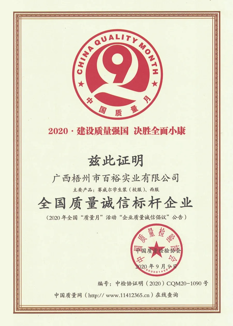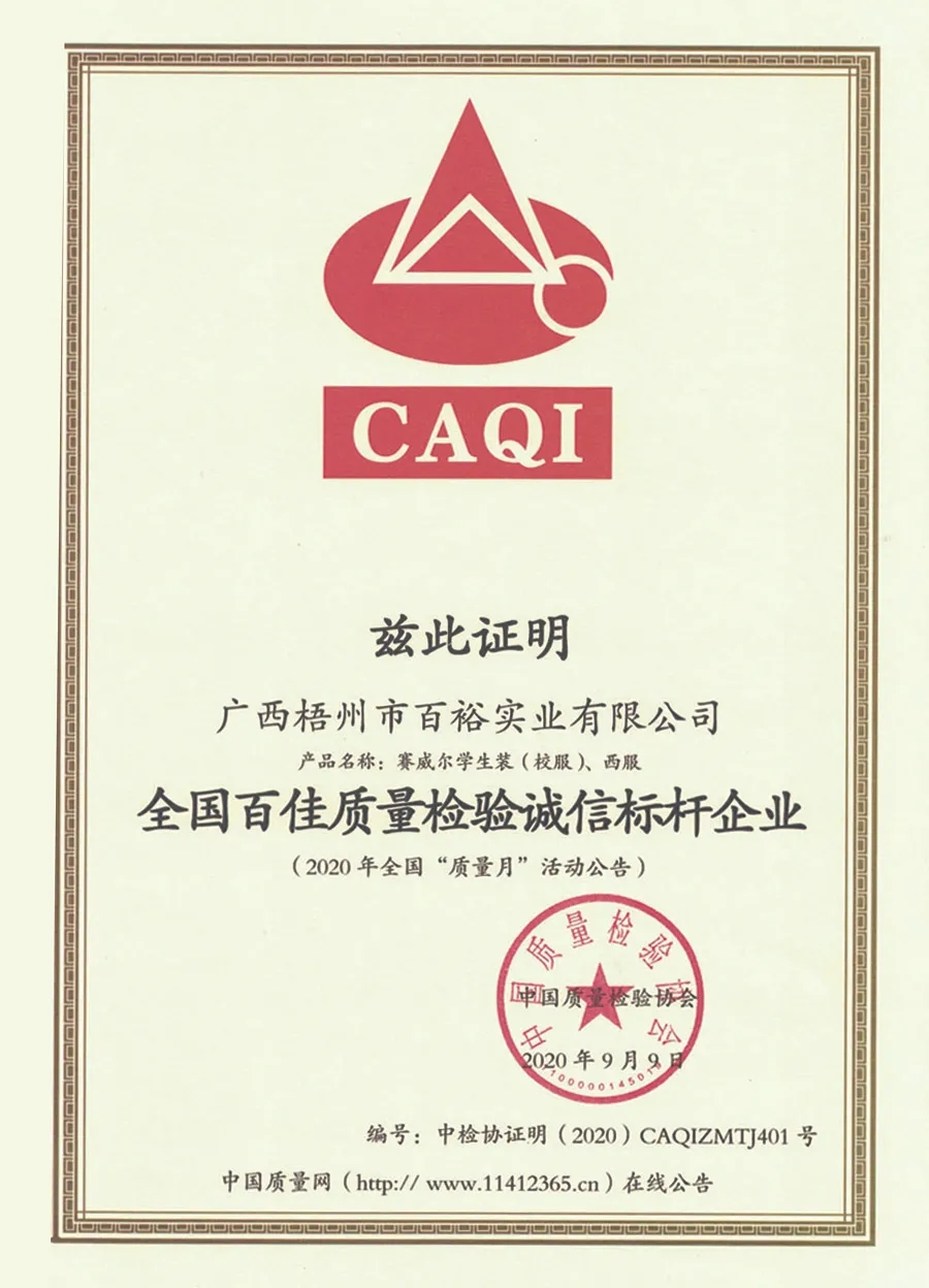 9月9日,百裕集團(tuán)產(chǎn)品憑借卓越的產(chǎn)品質(zhì)量和生產(chǎn)技術(shù),贏得中國質(zhì)量檢驗協(xié)會的認(rèn)可,榮獲“全國百佳質(zhì)量檢驗誠信標(biāo)桿企業(yè)”與“全國質(zhì)量誠信標(biāo)桿企業(yè)”榮譽(yù)稱號。