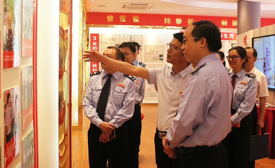 由稅務(wù)局黨組書記、局長陳懿帶隊的交流團(tuán)在百裕黨支部書記曾晏來的帶領(lǐng)下,參觀黨建中心、黨群活動室,了解我公司黨建工作。