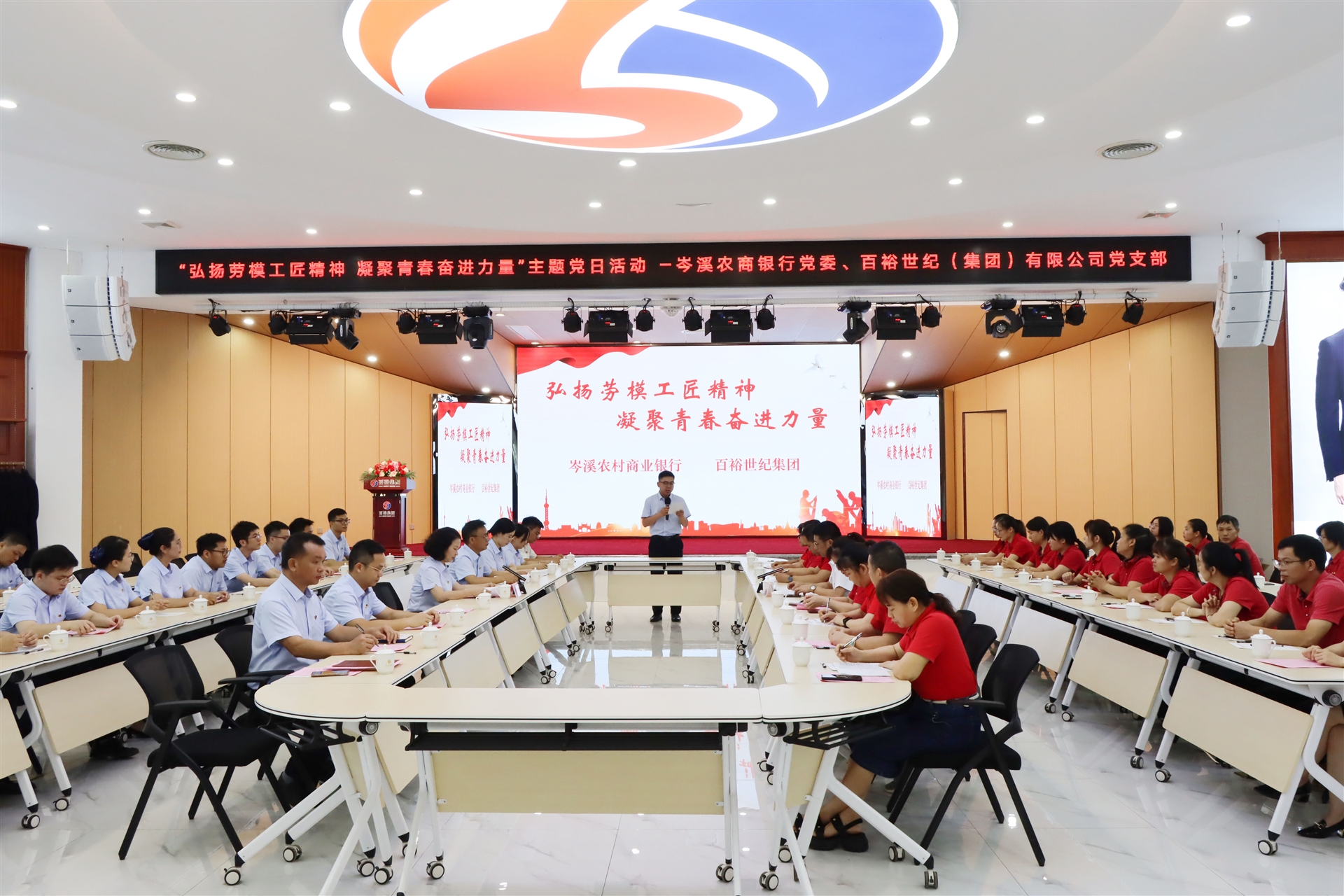百裕世紀(jì)(集團(tuán))有限公司總經(jīng)理曾晏來,岑溪農(nóng)商銀行黨委委員、紀(jì)委書記、監(jiān)事長陸海芝,黨委委員、副行長陳美強(qiáng)帶領(lǐng)雙方單位近50名黨員及青年員工代表參加本次活動(dòng)。