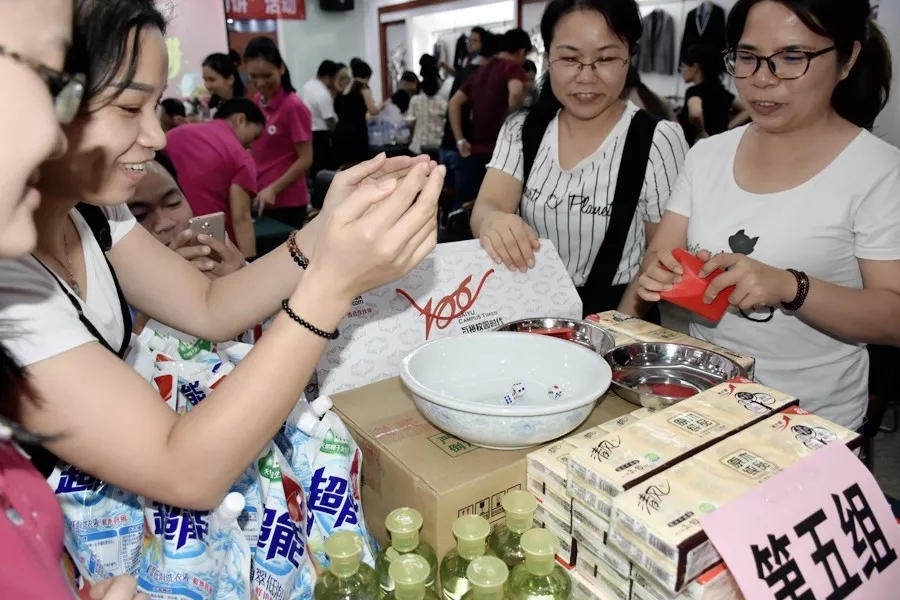 博餅的號角一經(jīng)蔡總經(jīng)理吹響,各個小組(八人圍成一桌,妥妥準(zhǔn)備就緒)果斷開撕,場面十足熱鬧。一時間,骰子與碗碰撞的清脆聲、奪得大獎時的歡呼聲此起彼伏。