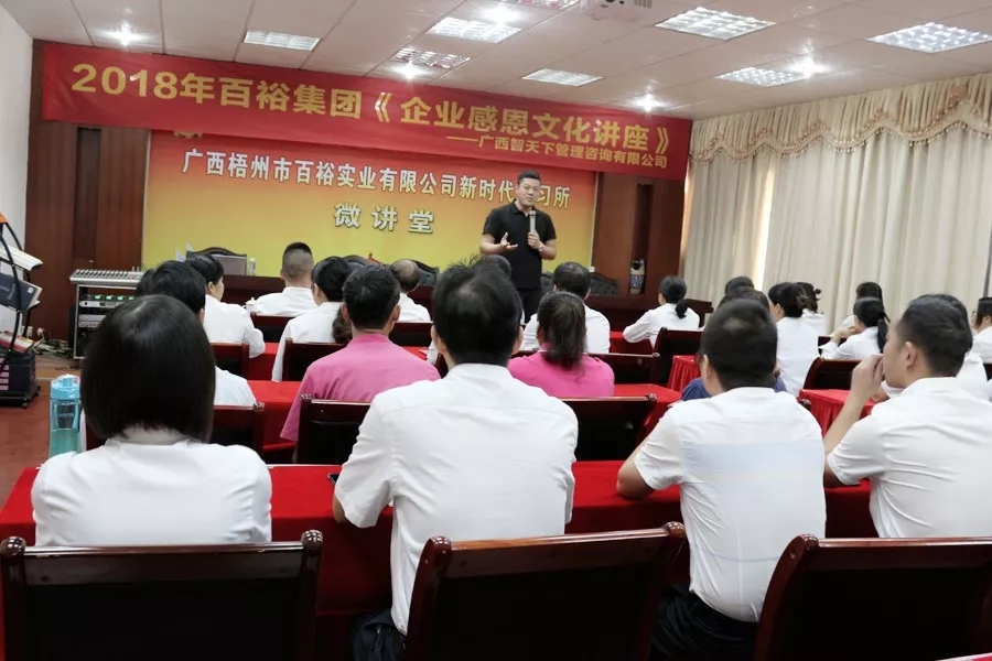 最后公司總經(jīng)理曾晏來發(fā)表感言:在百裕集團(tuán)這個(gè)平臺(tái)上,我們?cè)谠鲩L(zhǎng)著閱歷,豐富著自我,實(shí)現(xiàn)著人生的價(jià)值;在這個(gè)平臺(tái)上,我們用激情點(diǎn)燃著理想,用薪酬支配著生活。因此,我們應(yīng)該感謝企業(yè),感謝企業(yè)培養(yǎng)我們,感謝企業(yè),讓我們成長(zhǎng),感謝企業(yè)給予我們一片展示自我的天地,感恩就要有責(zé)任,讓我們立足本質(zhì),踐行“誠信、專業(yè)、創(chuàng)新、高效”的公司文化理念,從一點(diǎn)一滴做起,從身邊事情做起,常懷感恩之心,為全力實(shí)現(xiàn)公司又好又快和諧發(fā)展發(fā)一份光、散一份熱!感謝導(dǎo)師帶來的精彩教育講座,通過感恩培訓(xùn)講座,讓我們從活動(dòng)中體驗(yàn)感恩,并回歸現(xiàn)實(shí)生活,讓大家在不知不覺中受到教育,使其知、情、意、行在情理交融中實(shí)現(xiàn)自我完善,最終回報(bào)父母、回報(bào)社會(huì)、回報(bào)企業(yè)。