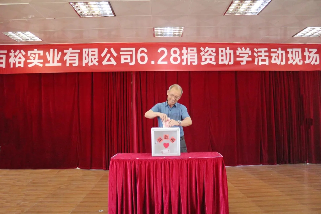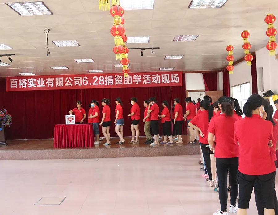 當(dāng)天,百裕集團(tuán)岑溪生產(chǎn)中心(百裕實(shí)業(yè)公司)也積極開展“6.28捐資助學(xué)”活動,號召全廠職工積極參與,共同傳遞希望之光。